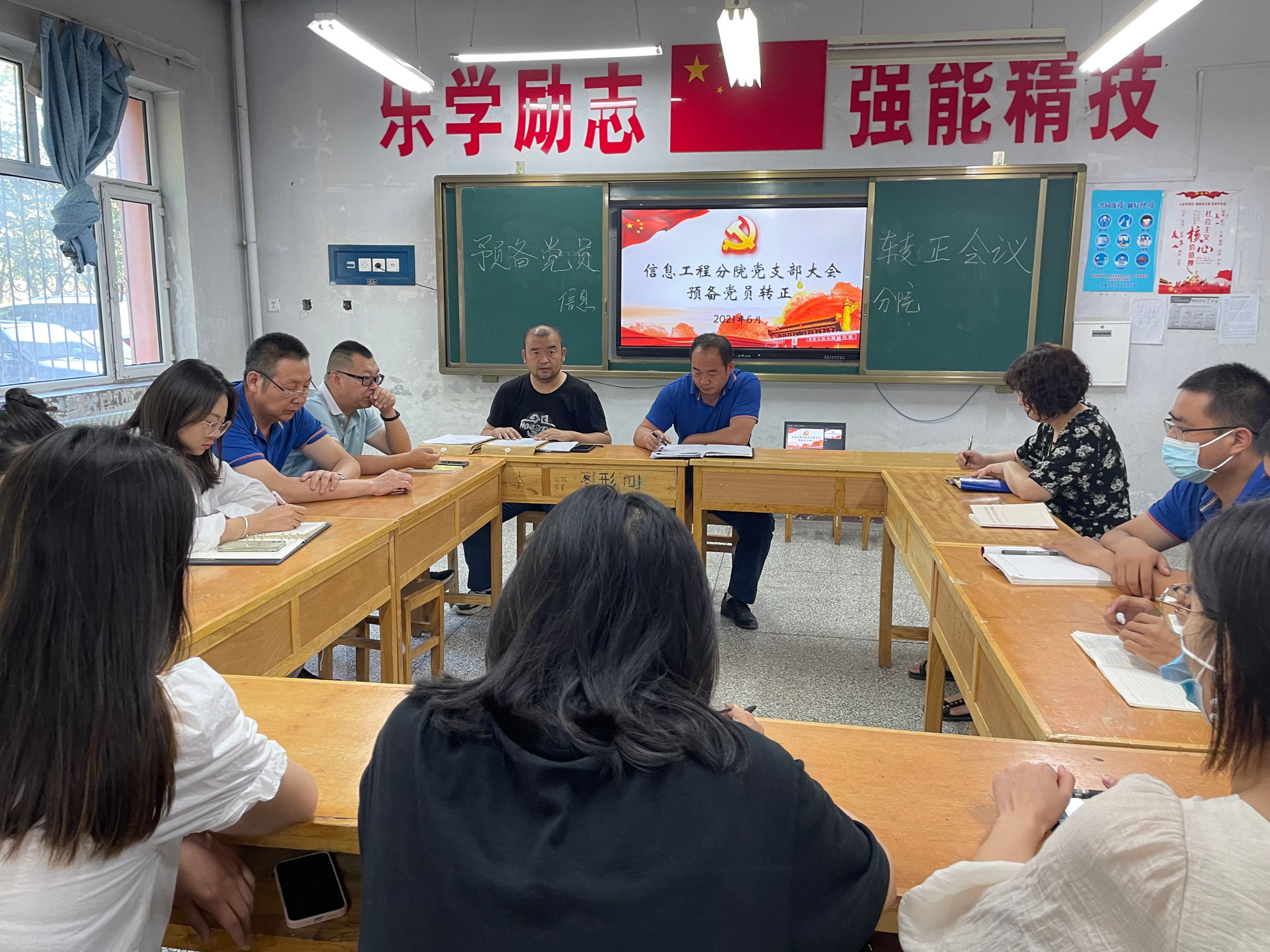 按照发展党员的规范流程要求,6月28日上午12时,信息工程分院直属党支部召开支部党员大会,讨论并确定了分院2020年预备党员转为正式党员,共4人。此次转正的预备党员均按要求进行了民意征询和实习单位鉴定,做好了会议准备工作。会议上,支部书记徐通对将要转为正式党员的同志们做了进一步要求,他讲道,按照发展党员流程,讨论预备党员转为正式党员,这些同志必须在平时表现里符合党员要求,大家一定严格审议,没有破例;各位培养人要真正反映预备期内的实际情况,不满足要求的坚决不发展;最后,希望大家做到身心均入党,在思想觉悟和行为行动上真正提高到党员标准上来,积极努力在今后的工作岗位上作先进模范中的一份子。会议逐一由培养人介绍了预备期的情况,党员们也对其逐一进行了评议票决。会后,分院组织全体参会成员参观庆祝建党100周年书画展,加深大家对入党的认识。