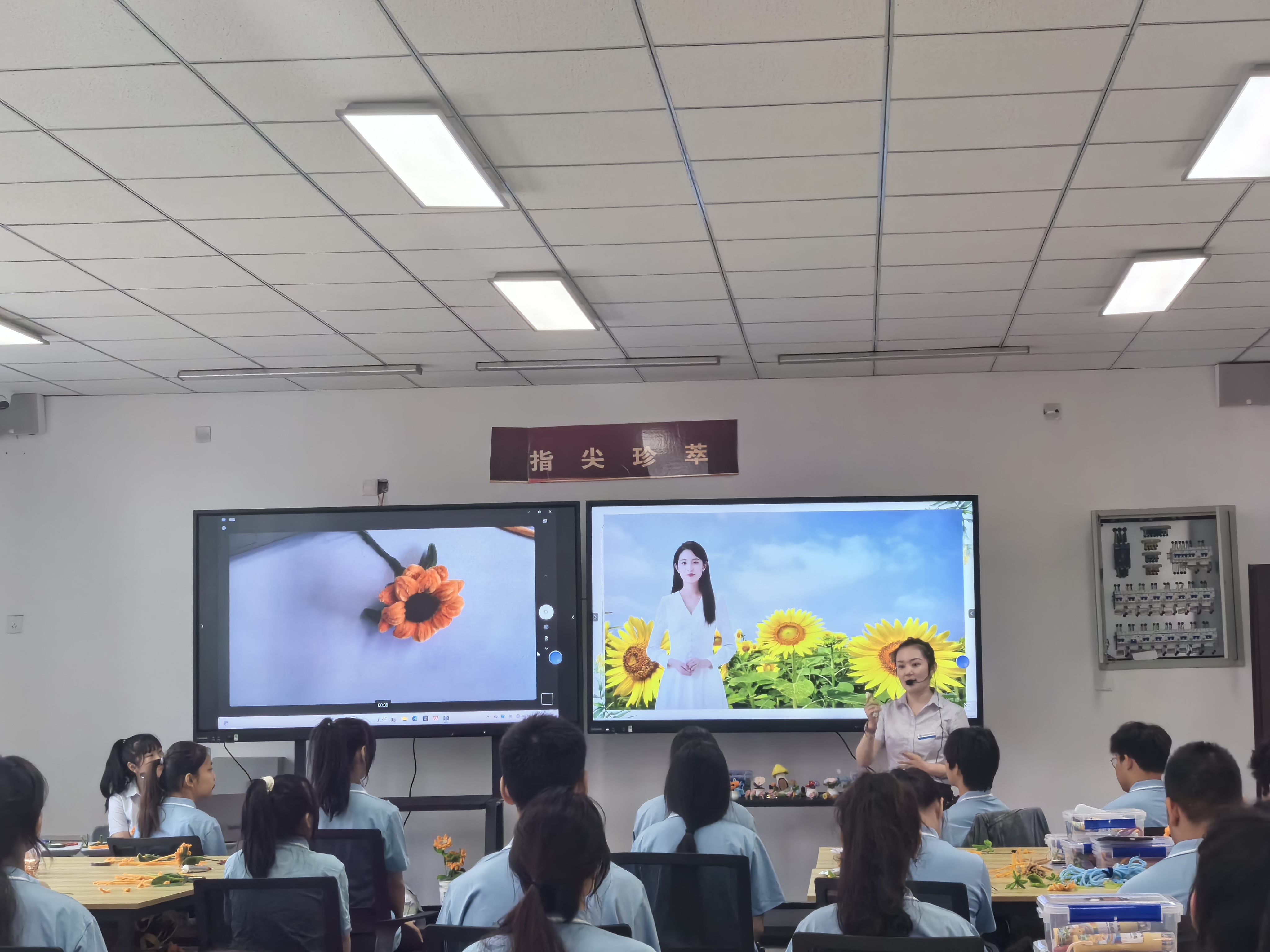 在讲课过程中,教师们充分展示了三教改革在教学内容和教学方法上的创新。《计算机网络基础》课程首次尝试与基础课英语的教学改革,专业课教师刘光富激情地为学生讲解专业知识,英语教师周丽用流利、悦耳、精炼的教学语言,引导学生学习专业课中遇到的重点英文词语,积极调动学生的发散式思维,加深对课程中出现的重点词语的理解和记忆,在课程实践环节,企业工程师罗超向学生展示如何将专业理论知识应用于实际情况,并指导学生动手实践,提高了学生的专业学习效果和实践能力;《立体构成》课程尝试与公共基础课语文的教学改革,在课程导入环节,仿绒花非遗传承人张晓玲以拍摄视频的形式向观摩师生展示向日葵的制作过程,语文教师曾小凌将诗词《客中初夏》中向日葵向阳而生的精神与专业知识融合,在教学过程中,专业课教师陈峙米为学生讲解了向日葵制作的每一步细节,王文卉老师通过高拍仪组织学生一同制作向日葵。