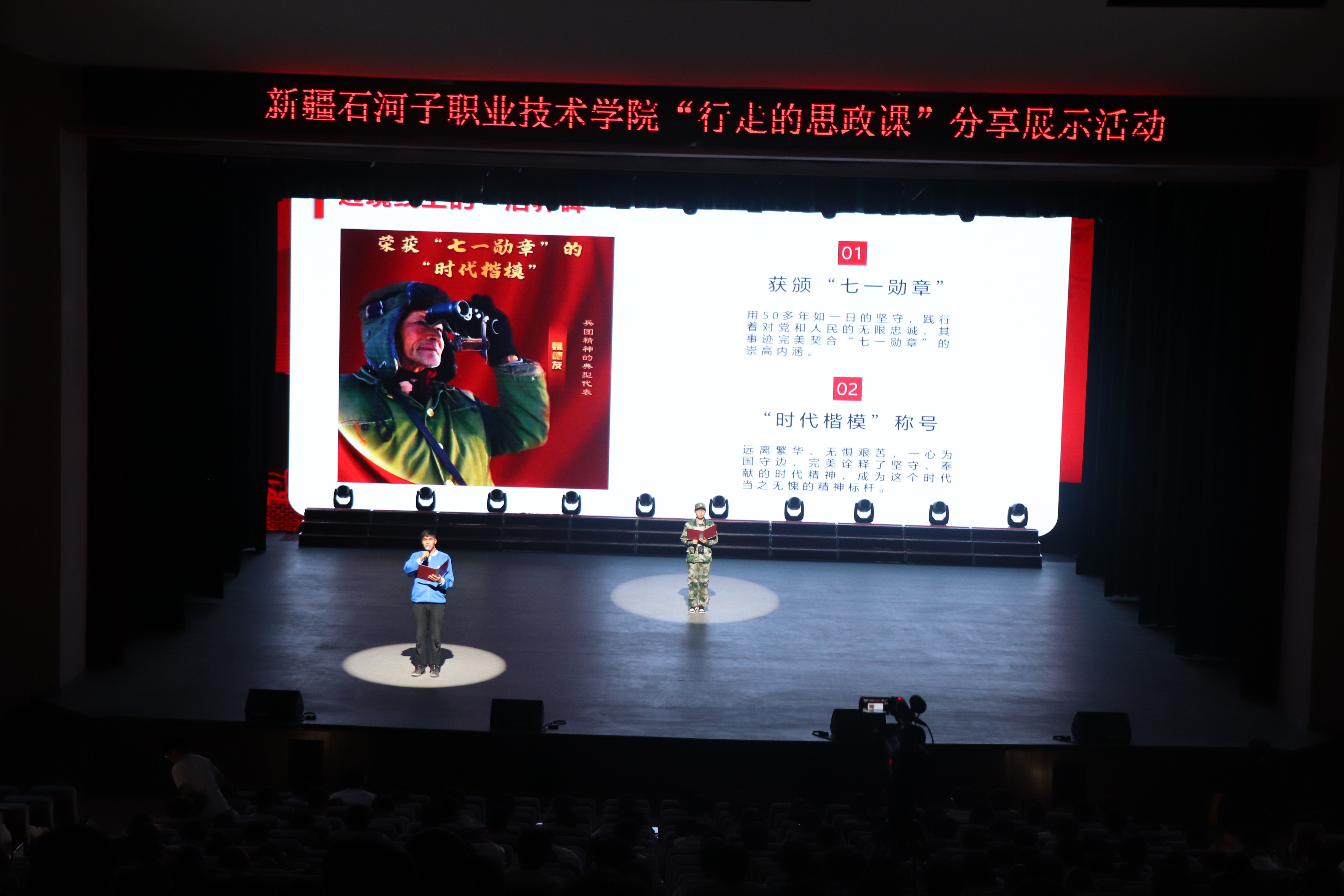 打造“耕心种德”思政精品项目,构建“11585行走的课堂”实践育人体系、“13455”劳动育人体系,“1+3+4+N”文化育人体系,打造“三阶四进两循环”的创新创业教育体系,构建“场、展、室、馆、园”多位一体的多功能思想政治教育实践基地。原创舞台剧《大漠誓言》已在兵团范围内巡演、展演20余场,各族师生在排演中深刻感悟兵团精神,让红色基因融入血脉。