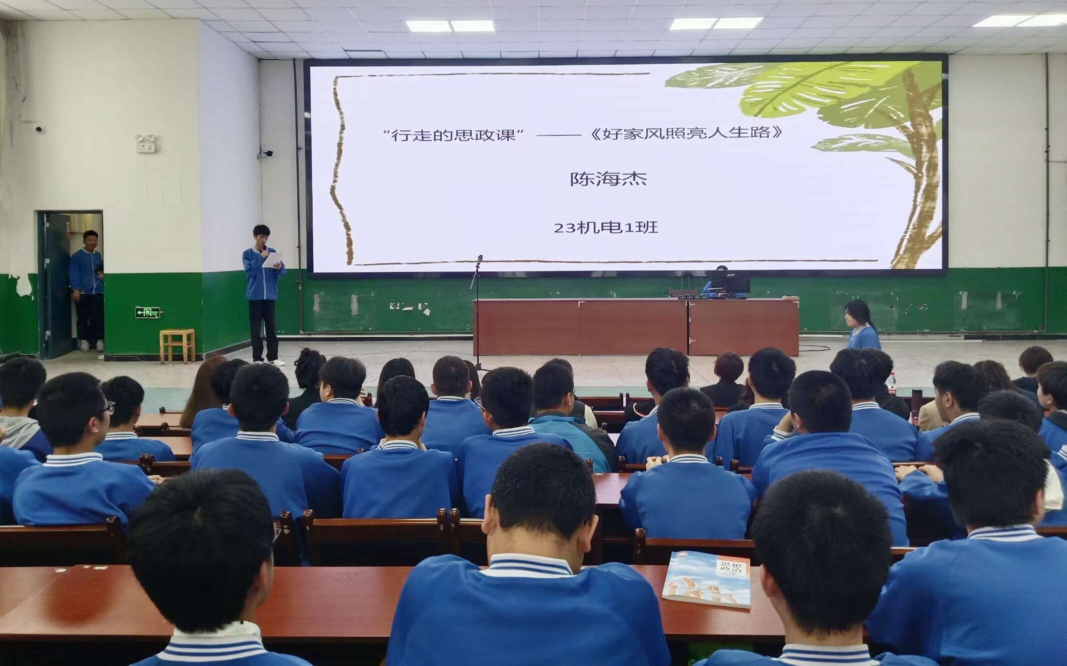 (中职学院综合办供稿)为了检验“行走的思政课”实践成果,为学生提供相互学习的平台,2024年4月26日下午,中等职业教育学院开展“行走的思政课”实践项目“文化之根——进行一次家风建设”故事分享会活动。学院领导、全体教师及学生代表参加了此次活动。