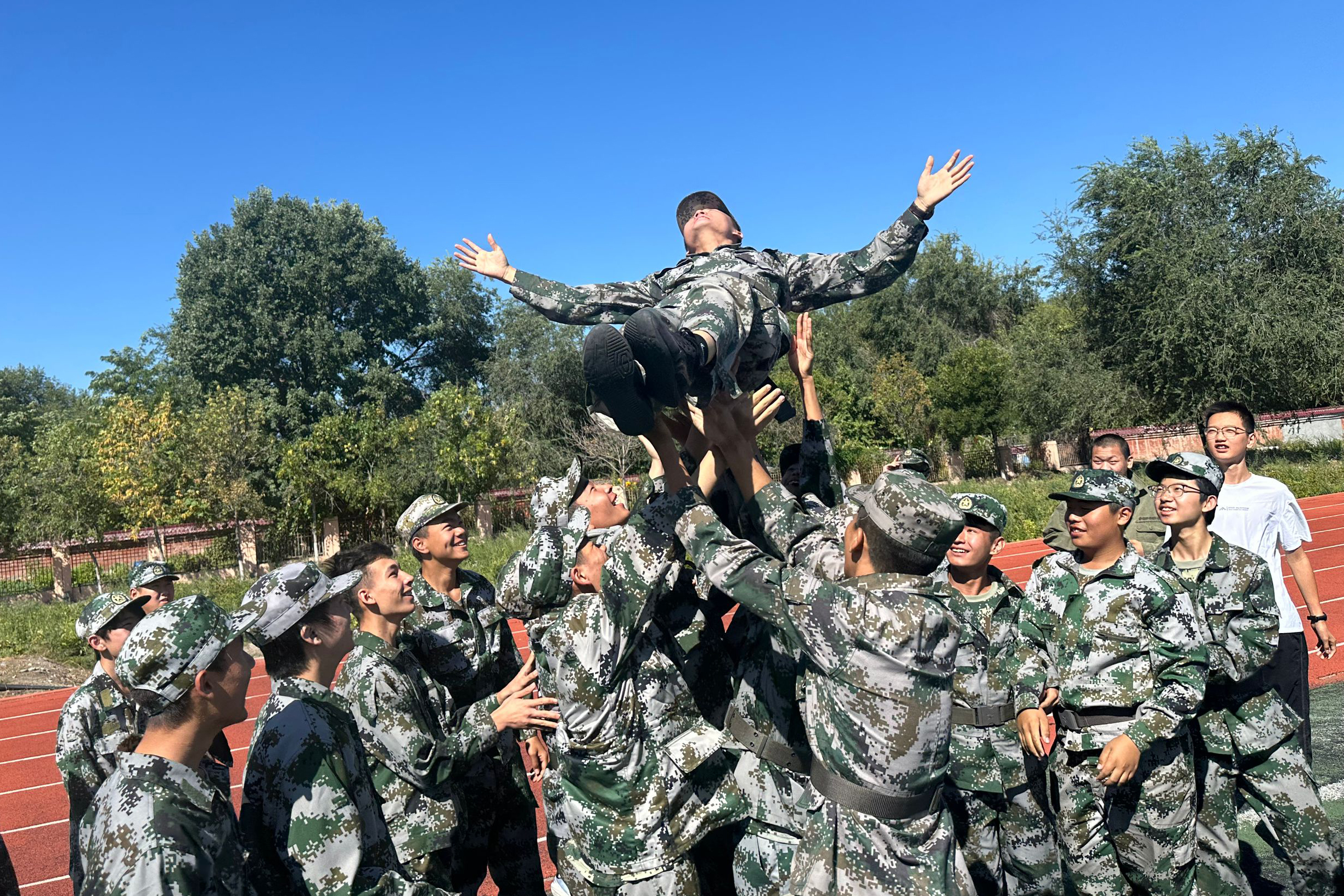 汇演落幕,军训正式结束。学子们有序与教官合影,迷彩校服与教官制服相映庄重,大家以镜头定格这段汗水与成长的时光,为军训留下珍贵记忆。这场汇演不仅是成果展示,更成为一堂青春成长课,为新学期奏响奋进序曲。