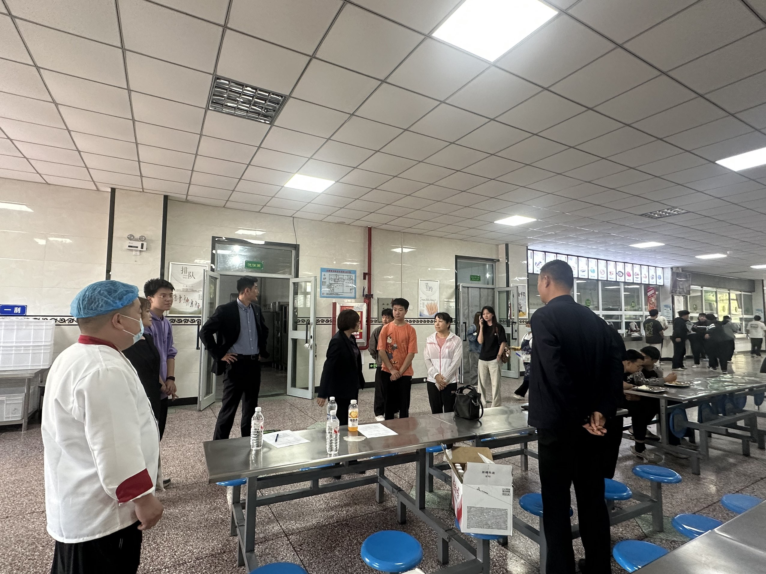 (李思思报道)9月28日上午,公共基础学院校园膳食监督家长委员会走进校园开展监督工作,学院后勤服务中心相关负责人、公共基础学院党总支书记吴晓晖全程陪同,通过“查阅台账+实地核查+后厨巡检+陪餐座谈”的全流程模式,凝聚家校合力守护学生饮食安全。