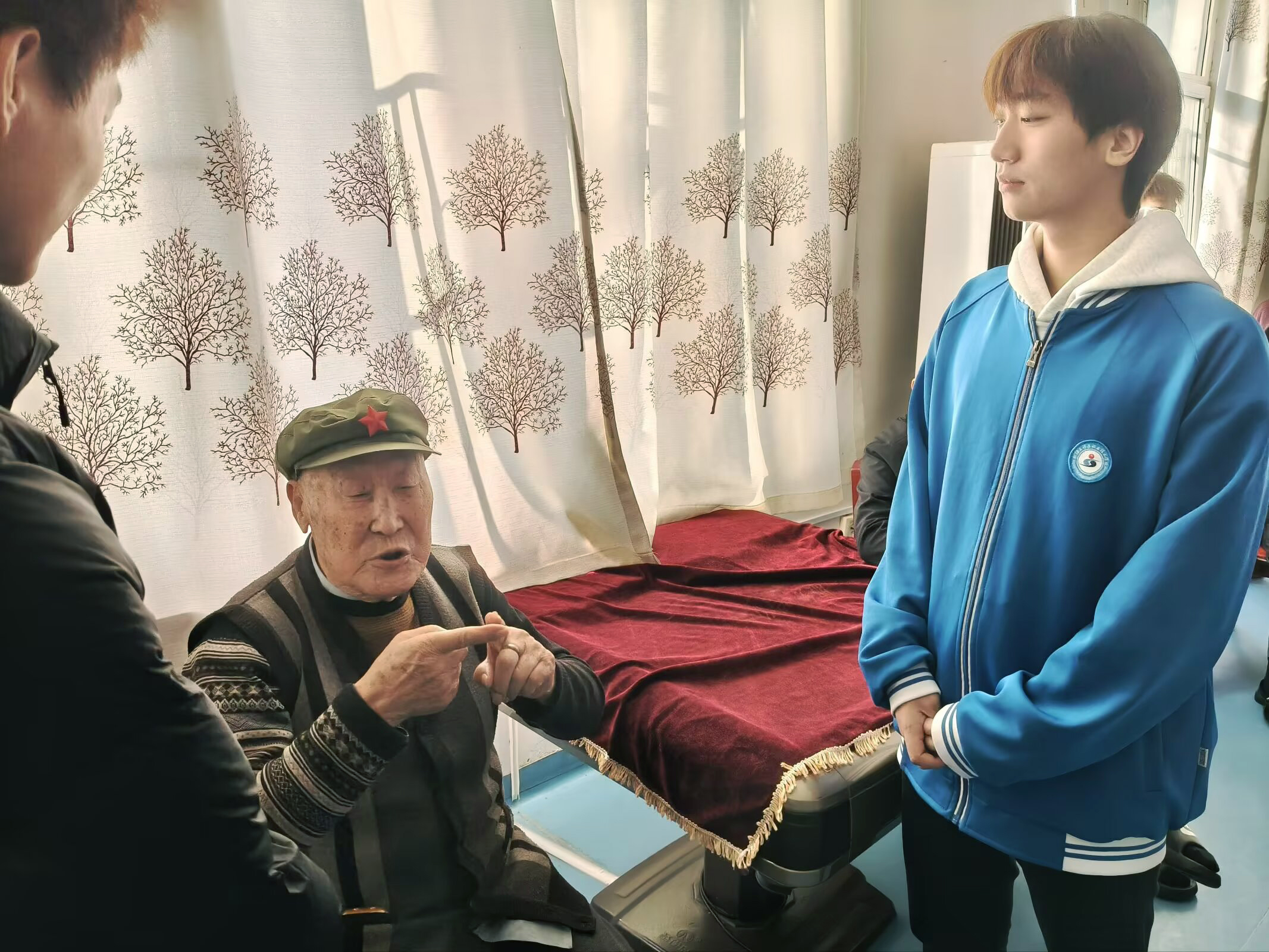 活动现场温馨洋溢。志愿者们围坐在老人身边,认真倾听着老人们讲述自己年轻时建设新疆的光辉往事。交谈中,志愿者们关切地询问老人们的生活情况与健康状况,同学们真诚的问候和关心,温暖了每一位老人的心田;志愿者们为老人们带来了精心准备的文艺节目,同学们的倾情表演和展现出的良好精神风貌赢得台下老人和工作人员的热烈掌声。
