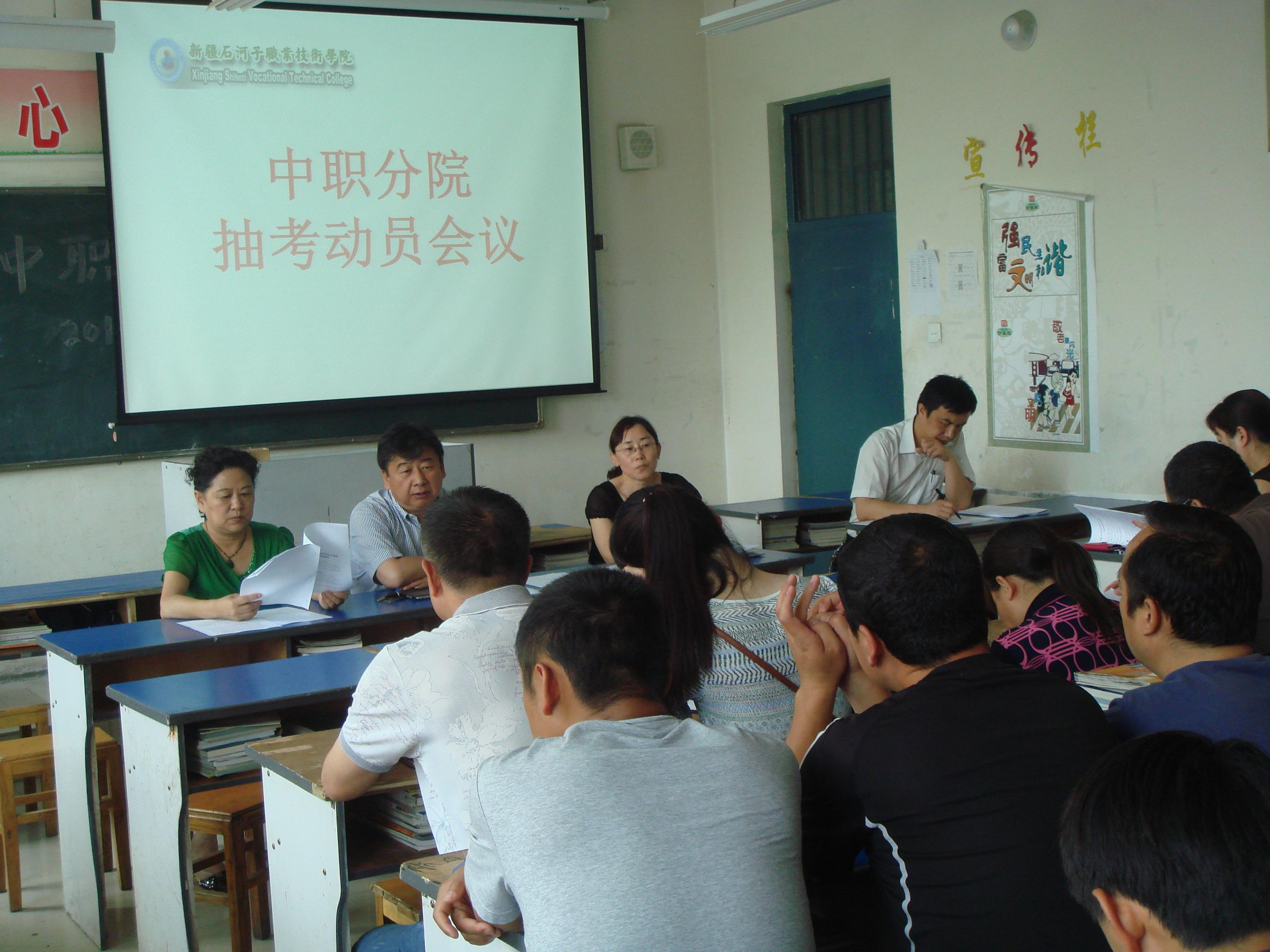 [中职分院教办6月6日讯]6月3日下午16点30分,总院领导带队在百忙之中到中职分院201教室参加了中职组织的关于兵团中等职业学校公共基础课程的抽考会议。参加此次抽考班级的班主任和任课教师、分院领导列席会议。