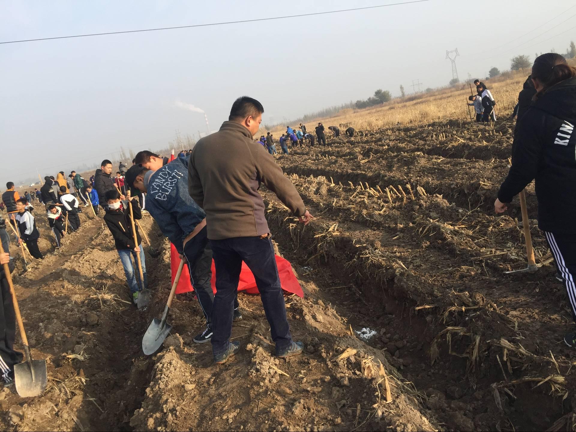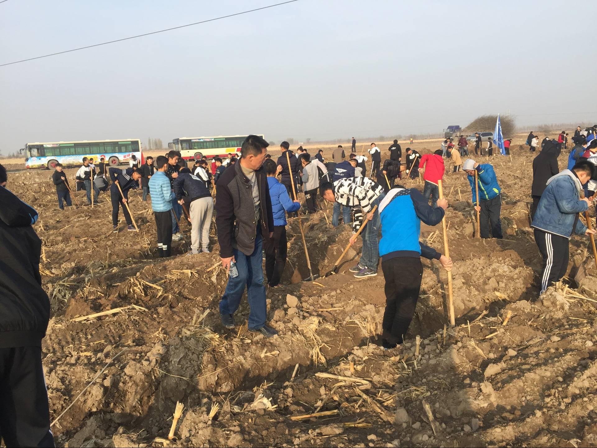 [中职分院11月4日讯]为认真贯彻落实第八师石河子市第八次党代会有关建成“一山、二河、三区、四水、五路”绿网体系,构建大绿大美‘天上人间的石河子’的指示精神。十一月三日,beat365唯一官方网站中职分院响应上级领导的号召,在吴晓晖院长、周江平副院长的周密部署下,学办周吉新等老师细心组织下,带领四个中专班学生近200人参加此次植树活动。