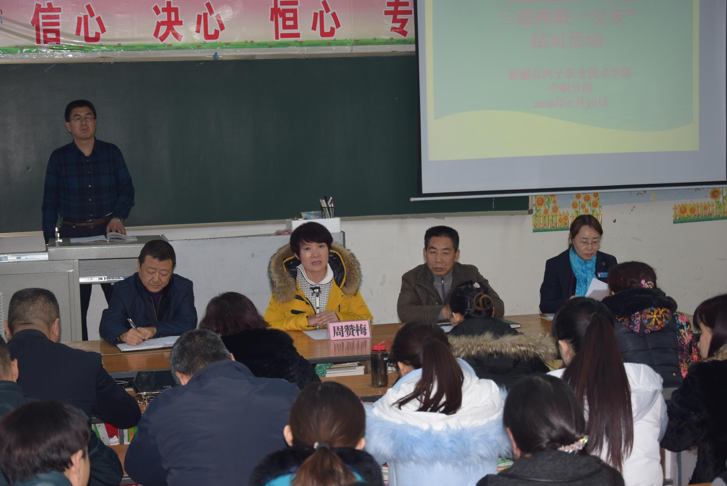 [中职分院12月2日讯]近期,自治区召开深入贯彻落实习近平总书记关于新疆工作总目标再动员会议,陈全国书记提出要加强高校和各类学校党的建设,牢牢掌握育人阵地。陈书记提出在新疆高校开展“三进两联一交友”活动。中职分院于2016年11月30日下午6时在202教室召开了“三进两联一交友”活动启动会。
