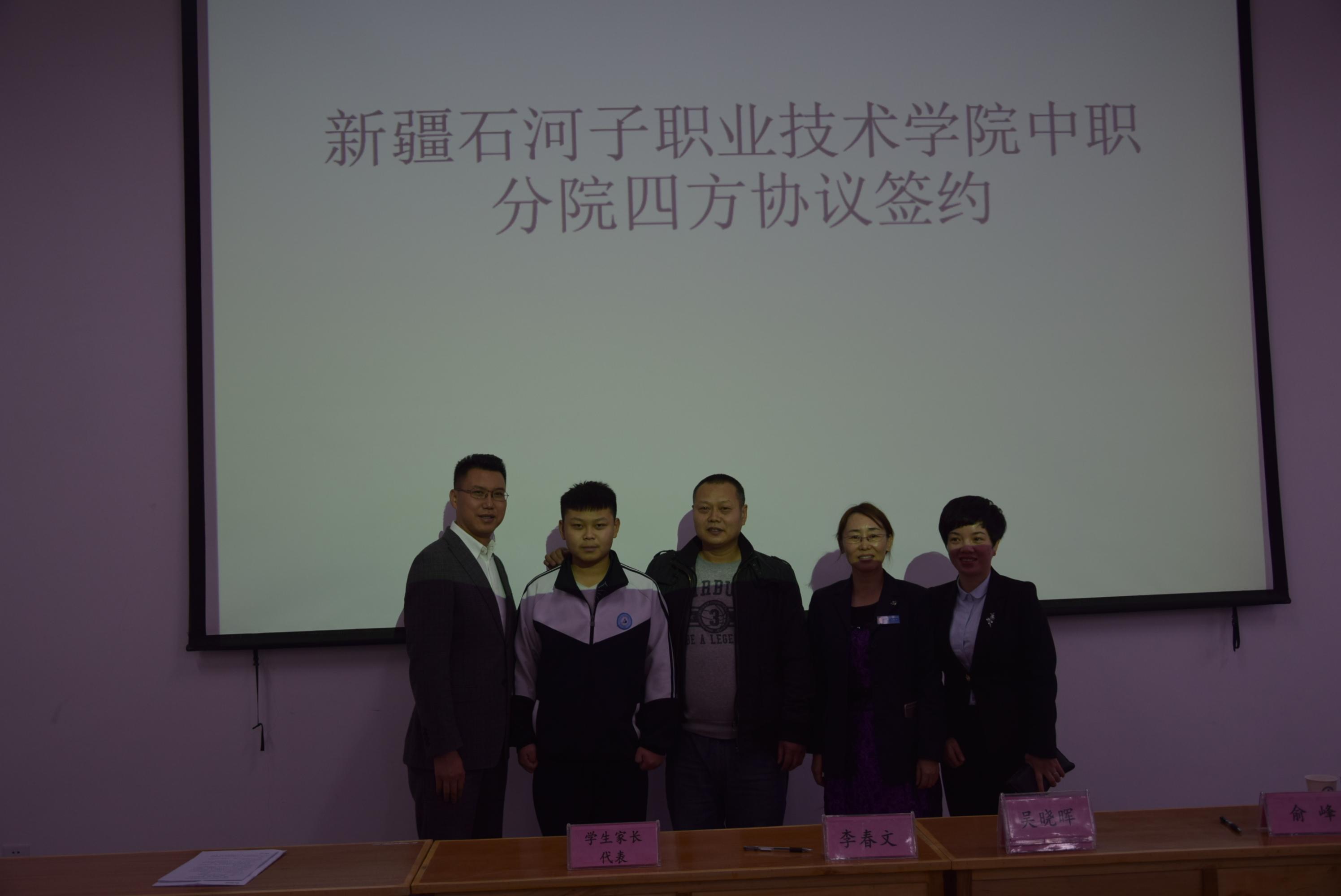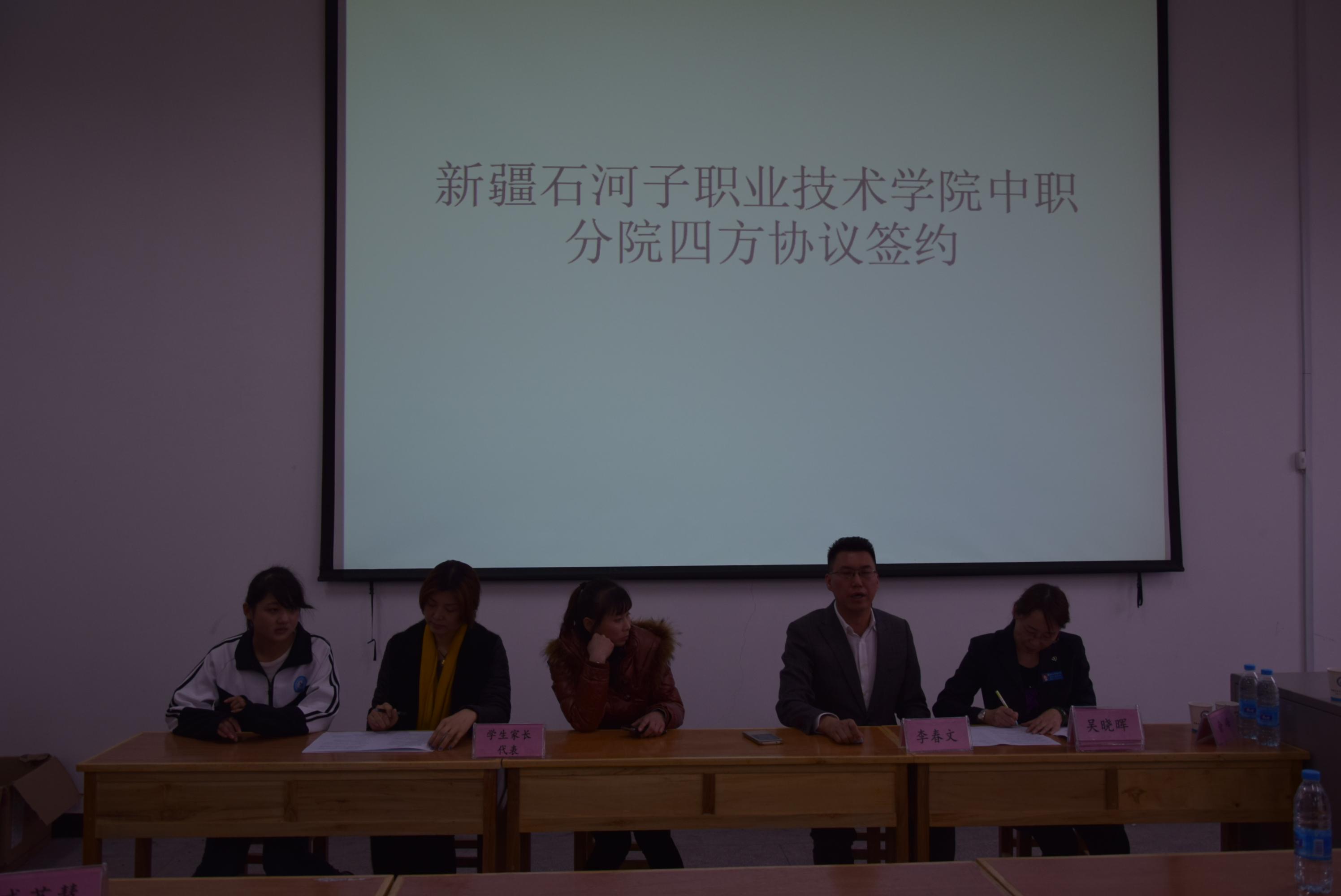 11月14日下午,学院中职分院、北山柒号餐饮集团、“北山柒号班”学生及学生家长代表,在学院综合楼108教室签署了现代学徒制企业四方协议书。参加签约仪式的有学院副院长管和疆、北山柒号集团董事长李春文,中职分院书记俞峰、院长、吴晓晖,副院长曹英军、马木提、周江平及其他相关老师。