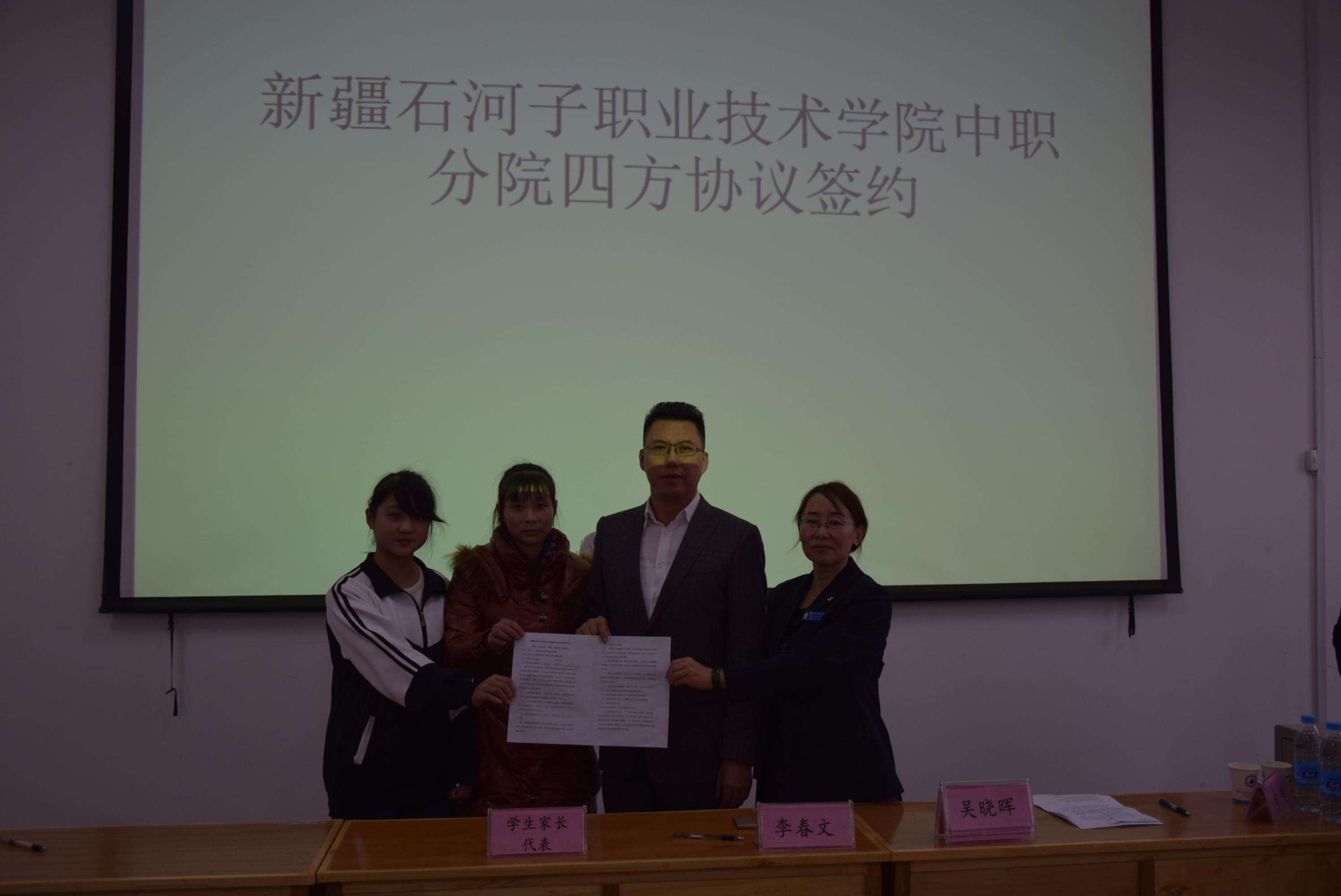 最后,中职分院院长吴晓晖、北山柒号集团董事长李春文、“北山柒号班”学生及学生家长代表签署了四方协议。