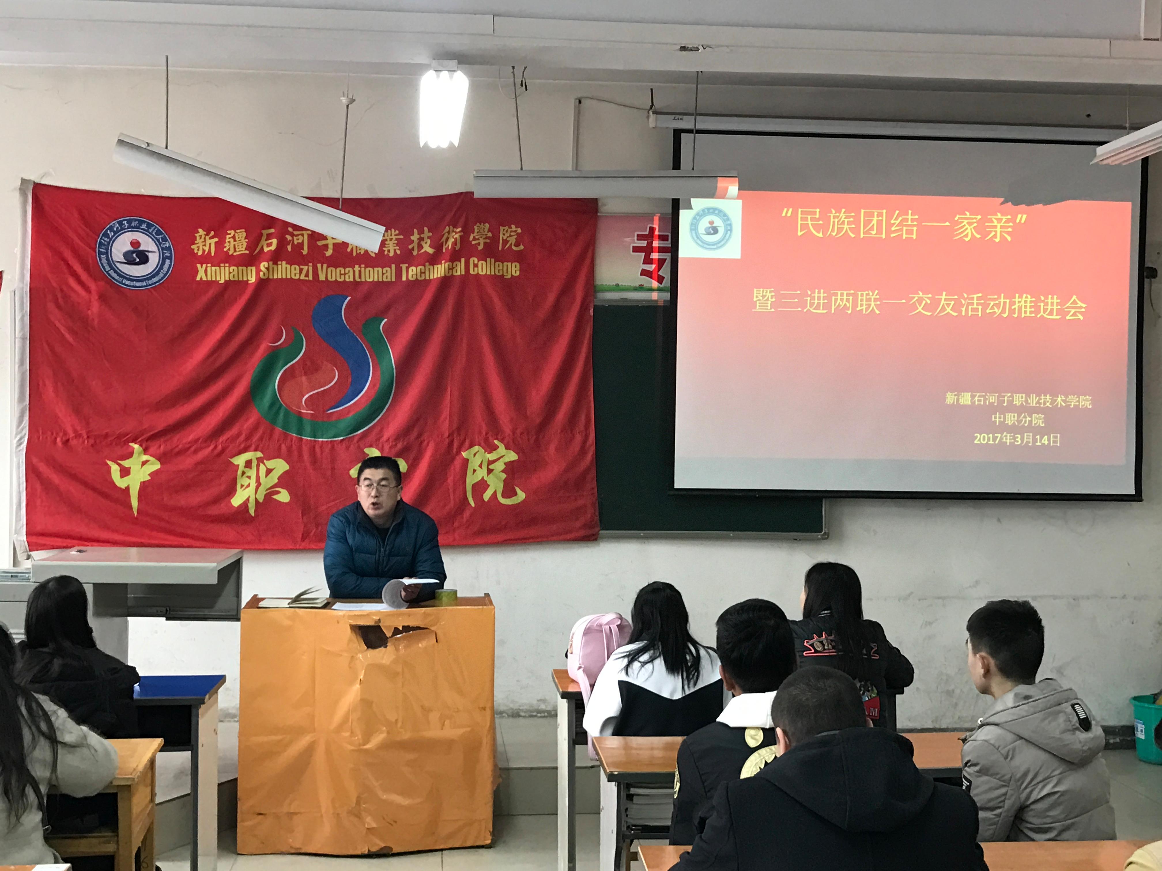 为贯彻落实助民族团结一家亲活动,beat365唯一官方网站中职分院于2017年3月14日在后楼102教室开展“三进两联一交友”的推进会。